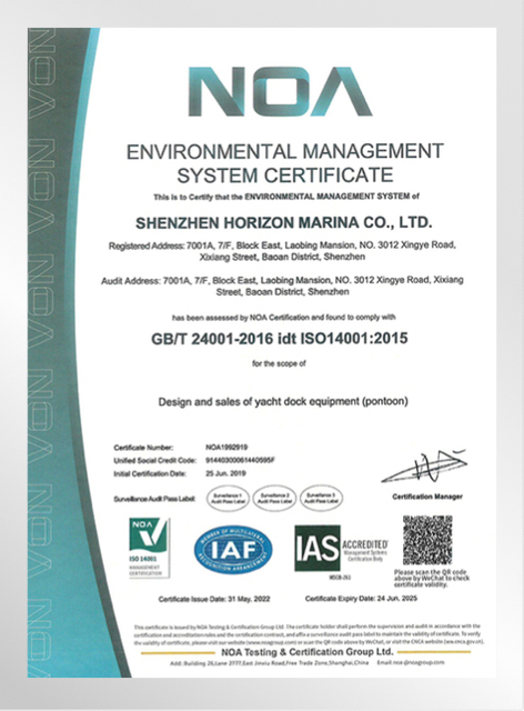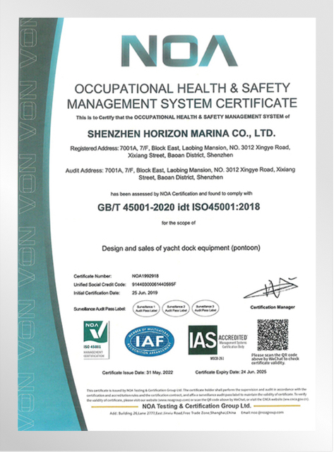 هورايزون مارينا هي مؤسسة تقنية تركز على البحث والتطوير في الرصيف وتصميم وتصنيع وبناء المراسي.يقع امتلاك موقع مصنع في مدينة الصين - دونغقوان ، ويغطي مساحة إجمالية قدرها 5000 متر مربع.